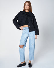 - Meet your perfect laying jacket.The Molly is an oversized pleated trucker. Made in our 100% cotton rigid denim and features back pleats and antique nickel hardware.