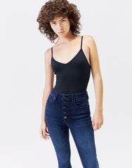 - Our sky-high rise skinny was created to compliment every body type. Combined with our amazing super stretch fabric, this skinny will sculpt and show off your curves in the most comfortable way. The Ella hits slightly above your natural waist, perfectly hugging your belly flat! It is fitted through the hips and thighs and has a skinny leg. 5-pocket styling with an exposed button closure. Antique brass hardware with contrast stitching. Elongate those legs with this ankle length cut.