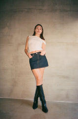 - Lucia, our mid-rise mini skirt. Featuring 5 pocket detaiing and made in our 100% cotton, rinse washed denim.