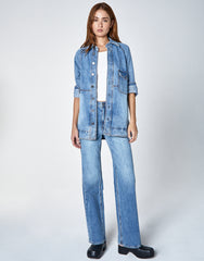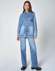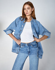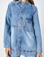 - Introducing Gia, our raglan sleeve shacket. An easy fit, made in a lightweight denim that is a perfect transition piece from summer to fall. Featuring antique nickel hardware.