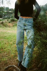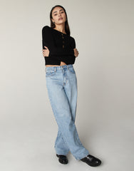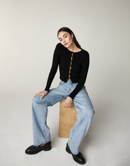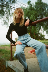 - Rumi, our high-rise stacked leg fit. A 90's, relaxed silhouette featuring 5-pocket styling and antique nickel hardware.
